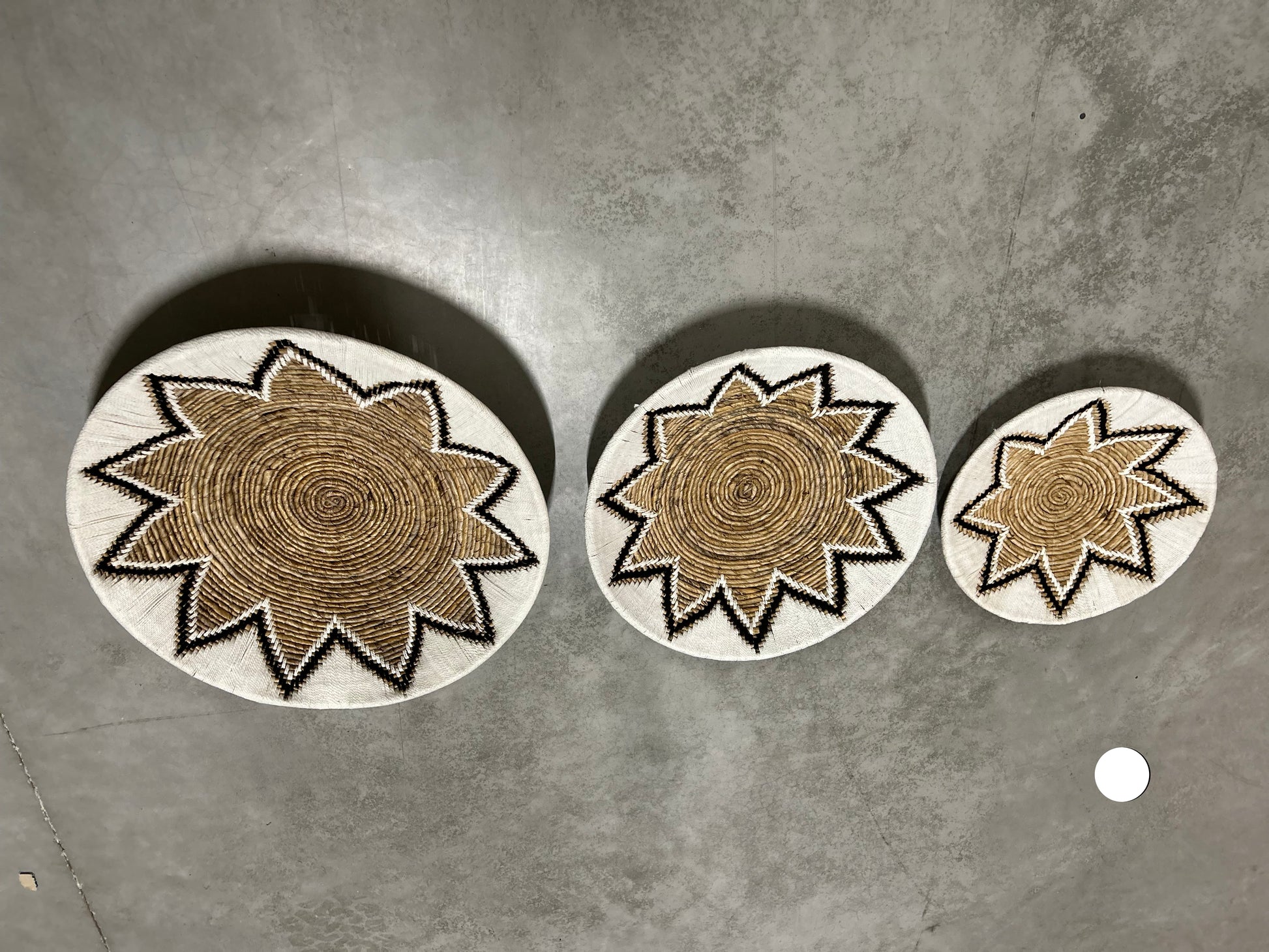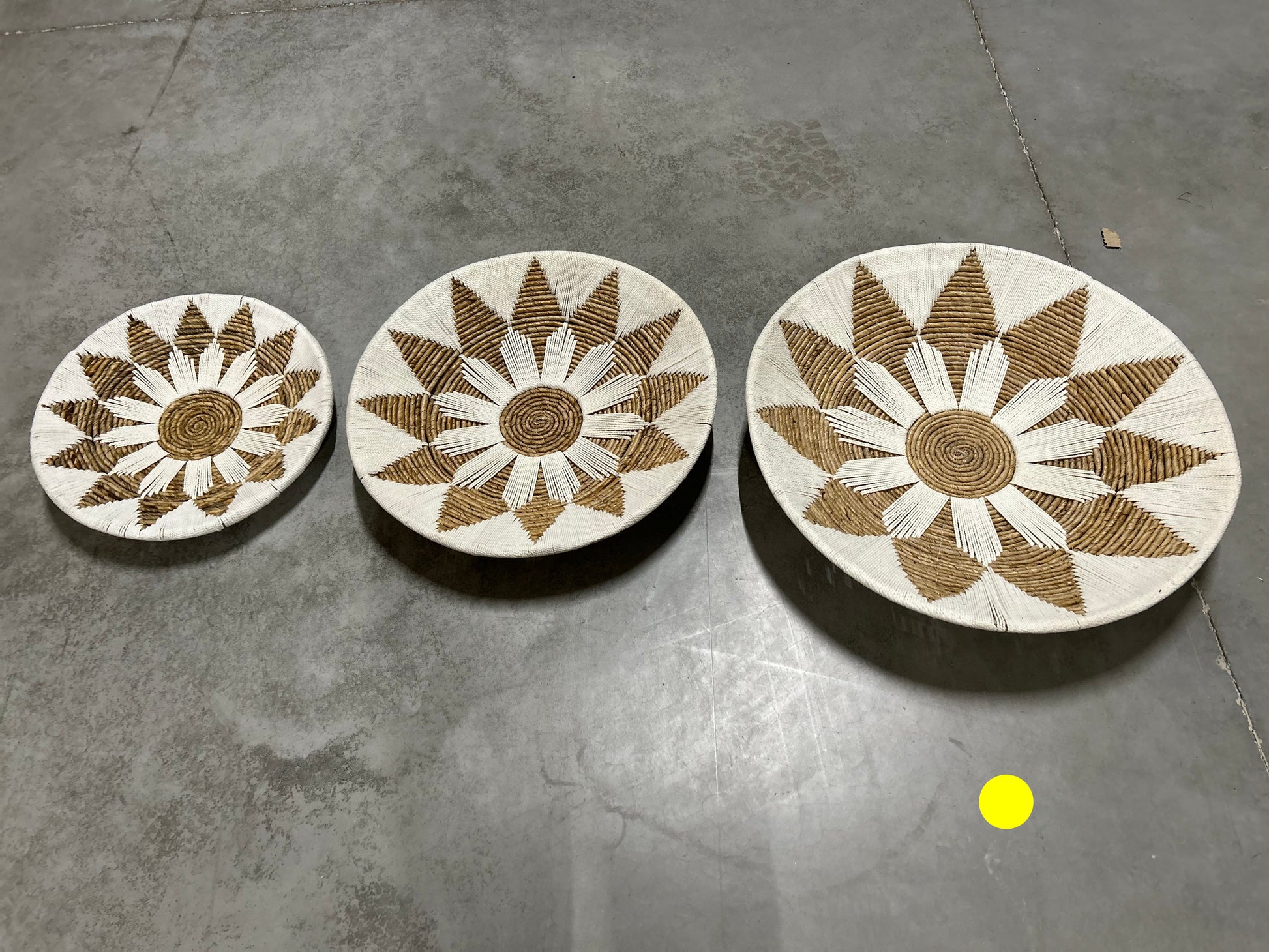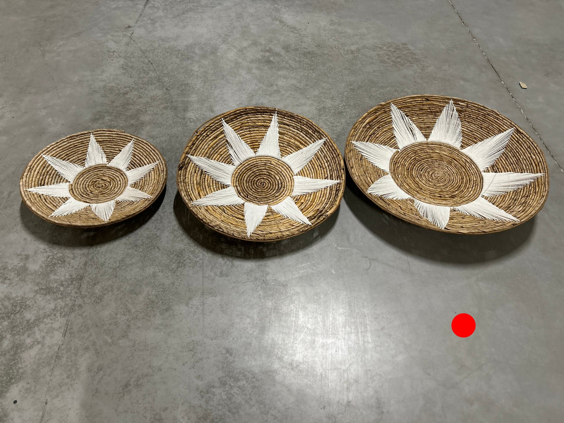 Deze set Balinese wanddecoratie manden is handgemaakt van natuurlijk en wit zeegras. De combinatie van neutrale tinten en natuurlijke materialen zorgt voor een rustieke en tropische uitstraling, perfect voor een bohemien interieur