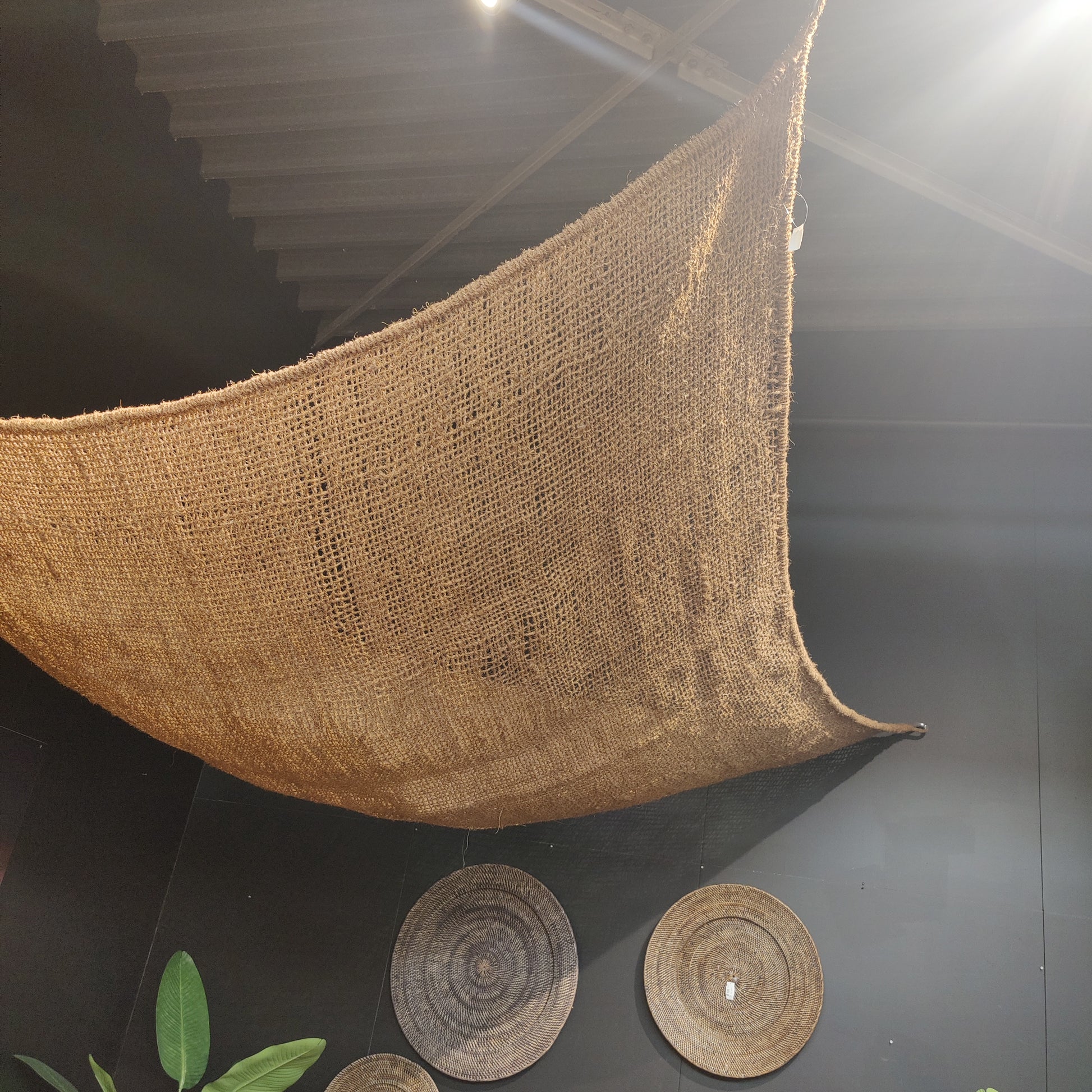 Het kokos schaduwdoek heeft een bruine kleur die goed past bij natuurlijke buitenomgevingen, zoals tuinen of terrassen. Het is ideaal voor het afschermen van een bepaald gebied van zonlicht, bijvoorbeeld boven een zithoek, een terras of bij een tuinbed. Het is een handige en stijlvolle manier om schaduw te creëren (gewicht ca 15kg)