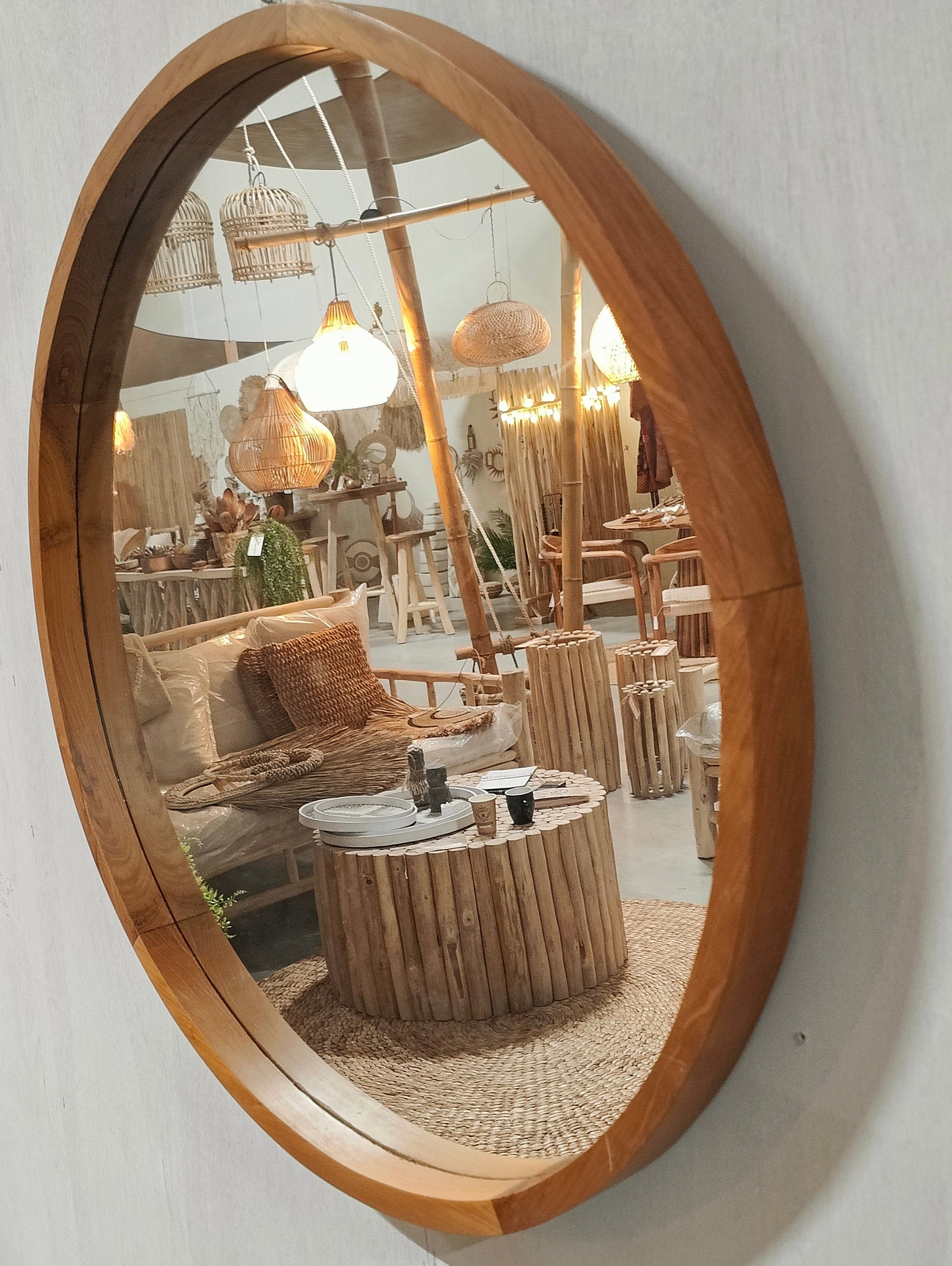 Een hardhouten spiegel van 79 cm breed en 5 cm dik heeft een robuuste en verfijnde uitstraling. Het frame is gemaakt van hoogwaardig hardhout, wat de spiegel niet alleen een stevige structuur geeft, maar ook een warme, natuurlijke uitstraling.