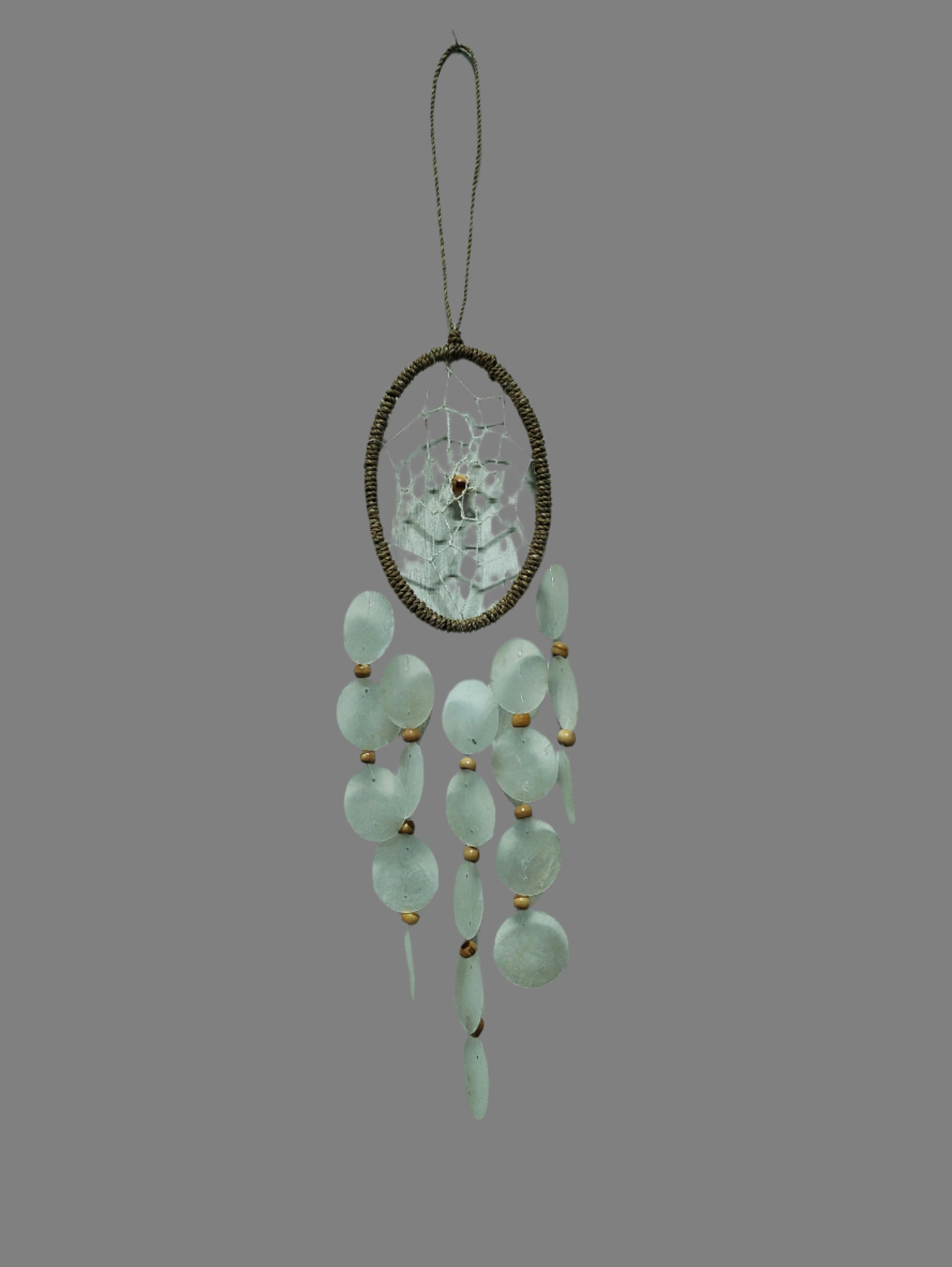 Un carillon éolien ovale fabriqué à partir de coquillages et de corde de Bali est une décoration magnifique et harmonieuse qui est souvent utilisée pour créer des sons apaisants lorsque le vent passe devant les coquillages. Le gong lui-même a une forme ovale, ce qui lui confère un aspect esthétique raffiné, et est fait de coquillages. environ 30 cm
