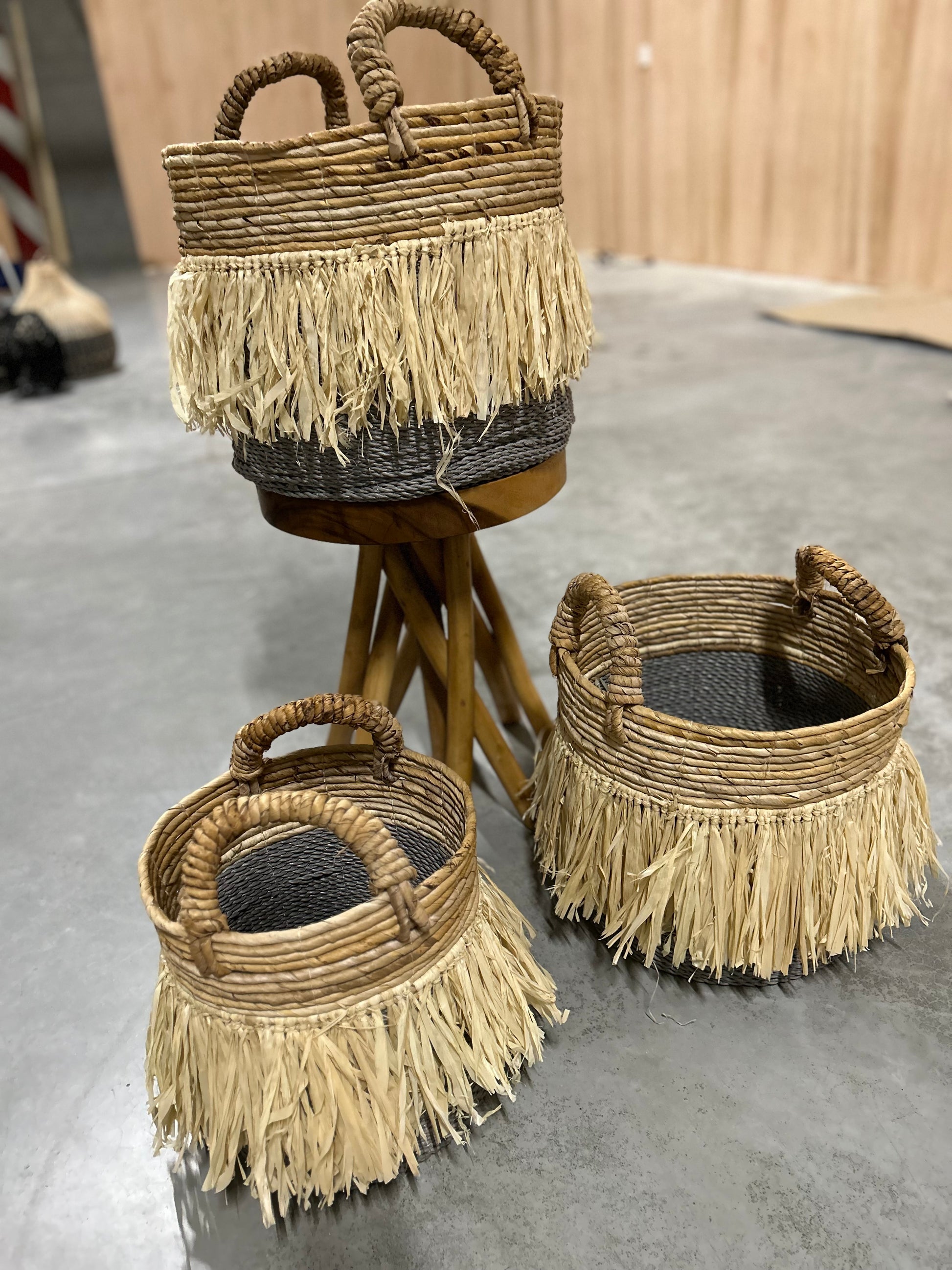 211101 Mandenset grijze rand van pitriet 36 cm 32cm en 29cm