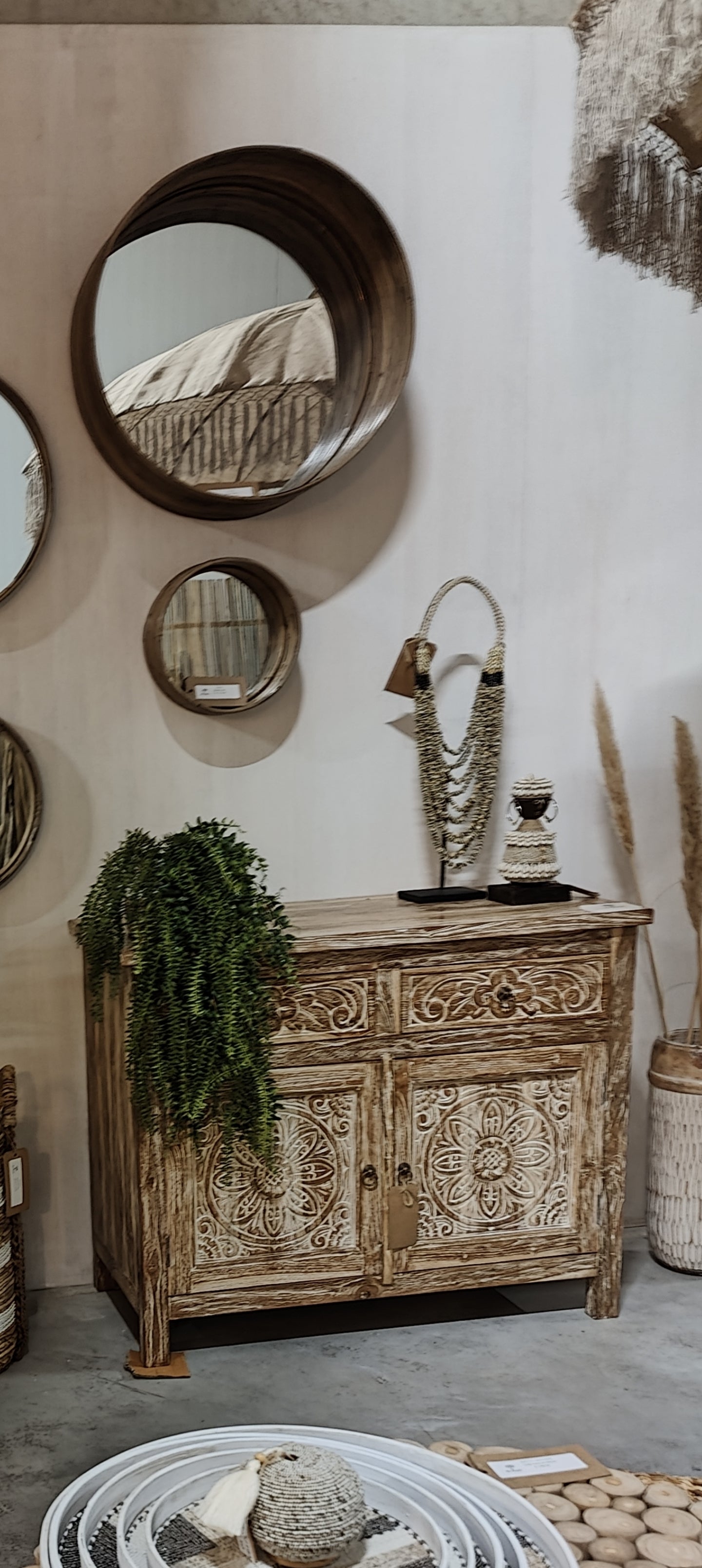 Een hardhouten kastje in Bali-stijl met whitewash is een prachtig meubelstuk dat de natuurlijke schoonheid van hout combineert met een lichte, verfijnde afwerking. Dit kastje heeft een robuuste uitstraling dankzij het gebruik van hardhout, wat het zowel duurzaam als stevig maakt. De Bali-stijl brengt tropische, rustieke elementen met zich mee, vaak geïnspireerd door de cultuur en het ambacht van Bali, en het whitewash-afwerkingsproces geeft het een lichte, verweerde look, die het een verfijnde maar natuurlijke uitstraling geeft.